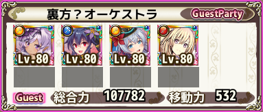 | D+ | Lv??? シンフォニオン Lv??? シンフォニオン Lv??? シンフォニオン | 湖畔 | 突 突 | 敵:攻撃力+100%、次スキル発動率+100%、再行動(上限解放)100% |