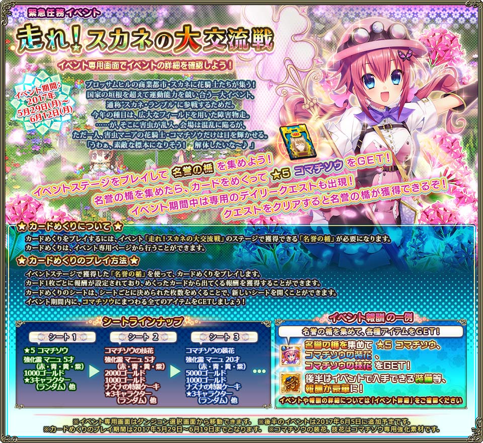 - ★5花騎士「コマチソウ」は、カードめくりの報酬として獲得できる。