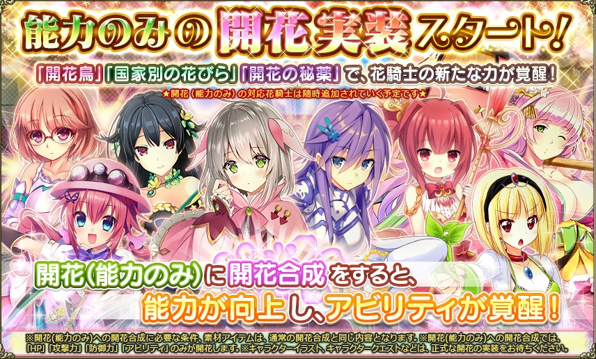 開花(能力のみ)実装以降、新規実装された花騎士は全て実装とともに開花(能力のみ)が用意されている。