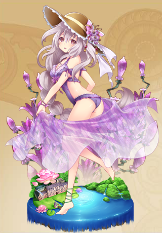 | 自己紹介 | 普段からあまり外に出ないのに、み、水着でなんて……。 団長様に見られていると思うと余計に恥ずかしいです……。 ホトトギスの花言葉「秘めた思い」は 開放的なリゾートとは合わない気がします……。 |
