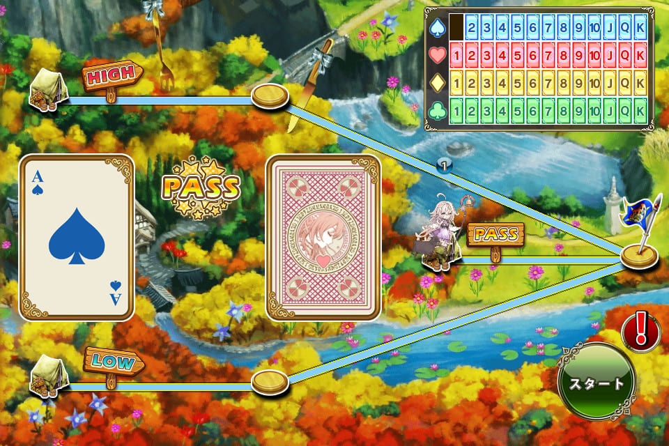数字が大きい(High)か小さい(Low)を予想し、その予想の正誤で勝敗を決します。